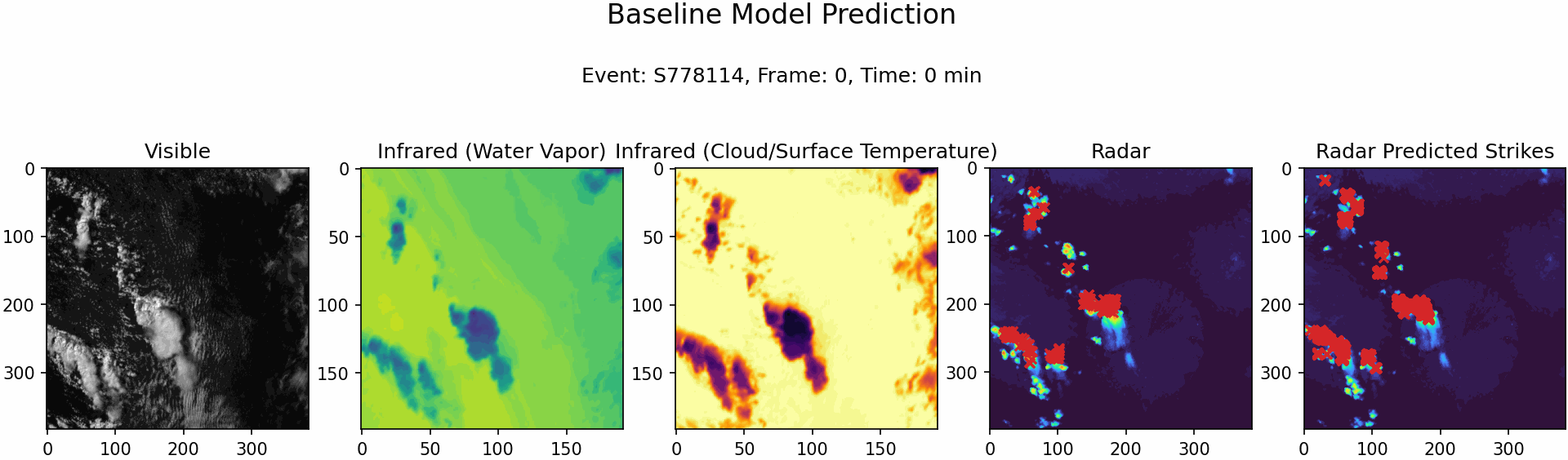 Each year, lightning storms cause fatalities, wildfires, power outages, disruptions to air travel and flooding, often with little warning. Approximately 2000 thunderstorms are occurring at any given time around the world. Accurate, real-time predictions are essential to protect power grids, guide flight rerouting, and inform evacuation plans. With climate change contributing to more extreme and unpredictable weather patterns, real-time forecasting of lightning storms has never been more crucial: a 1 degree Celsius rise in temperature could result in a 12% increase in lightning strikes.