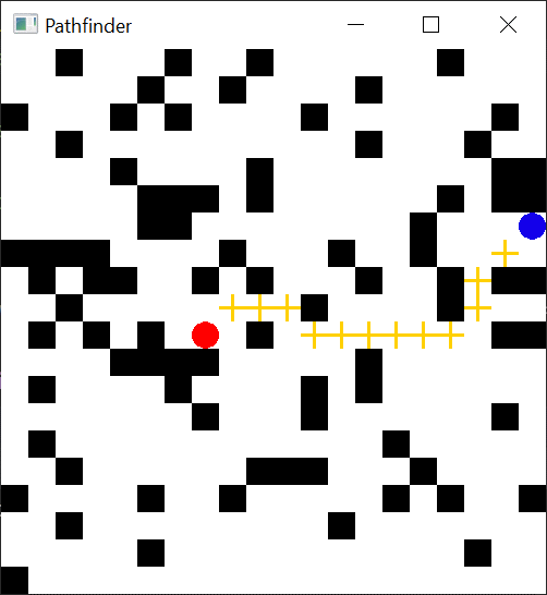 Pathfinder consists of a runner (controlled by the player) and a tracker which follows the runner using the shortest available path.